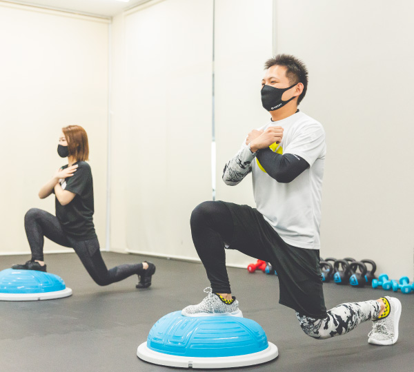 トレーニング初心者や楽しく運動習慣を身に付けたい方向けの、機能改善・基礎体力の向上を目的としたクラス。自重(自身の体重)・軽い重りを使った易しいトレーニングを行います。フォームの習得・柔軟性の獲得を目指し、無理のない強度で自身の身体と向き合いながら行います。